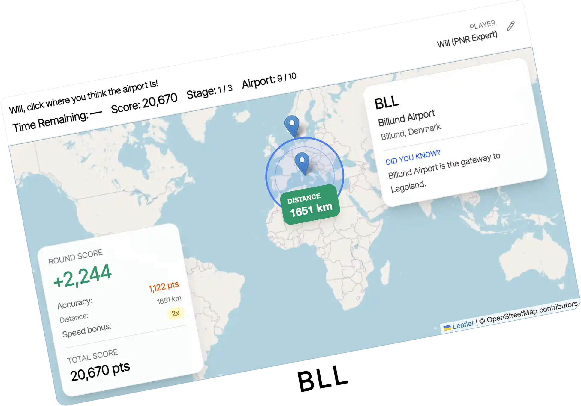The closer you click and the faster you respond, the higher your score. Climb the leaderboard, challenge your colleagues, and prove you really know your airports.